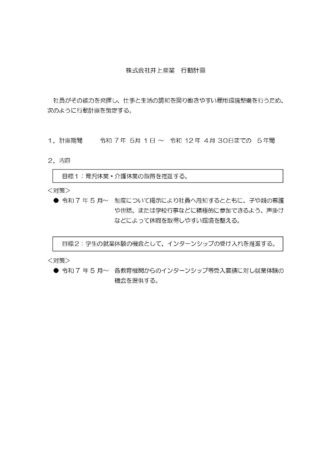 次世代育成支援対策推進法に関する一般事業主行動計画を策定